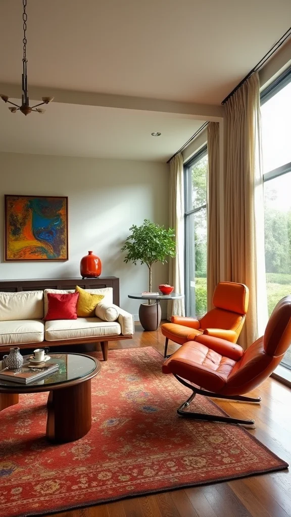 Accessorizing your 70s living room is all about finding that balance between groovy and sophisticated! Consider adding retro-inspired lamps, geometric art prints, and funky throw pillows. Vintage collectibles like record players or retro vases can add character, while sleek coffee tables made from glass or metal can keep the look polished. Don’t forget plants—lush greenery not only adds vitality but also ties the whole room together beautifully!