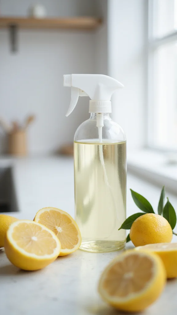 Want a natural way to clean? Lemon and vinegar work wonders together. They disinfect and leave a lovely scent in your kitchen or bathroom. Just mix equal parts of lemon juice and white vinegar in a spray bottle. Spray it on surfaces and watch it shine. You’ll love how fresh it smells, and it’s a trend you can find on Pinterest!