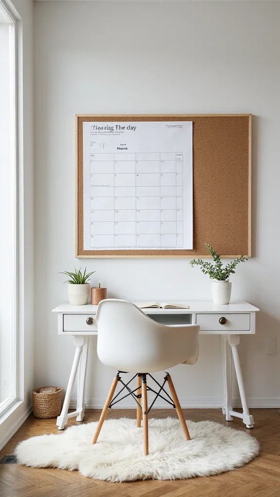 Use a minimalistic layout for your schedule, maybe on a chic bulletin board. This way, you can maintain a clean home while keeping your decor stylish. A plan lets you enjoy your space more without stress!