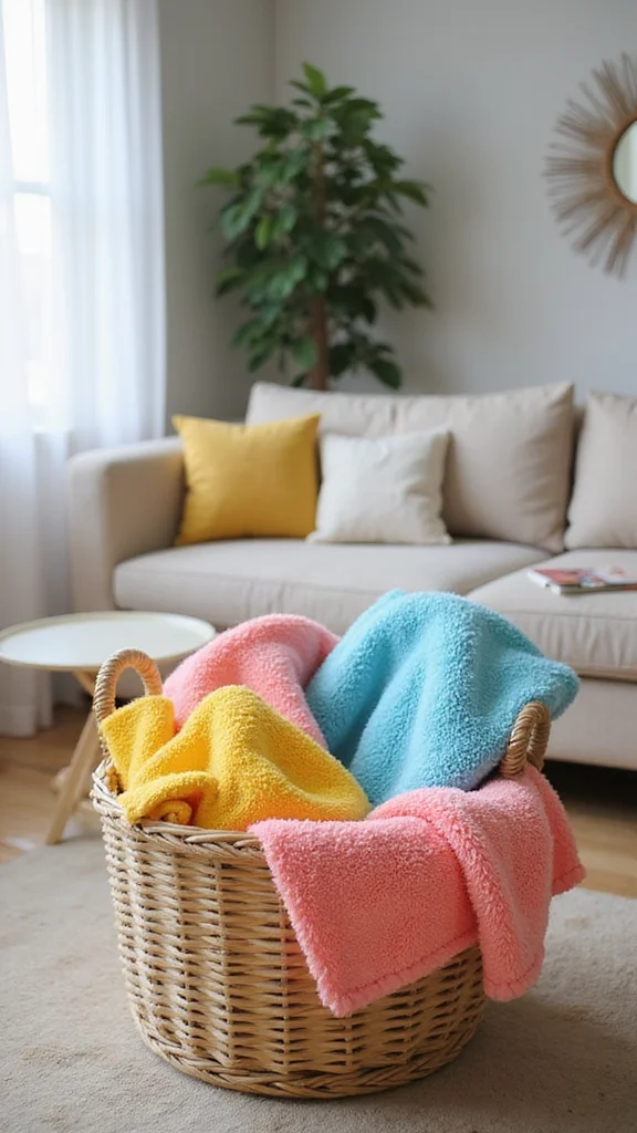 Keep a stack in a stylish basket in your living room for easy access. This not only helps you maintain clean surfaces but also looks great with your minimalistic decor. Pick colors that match your home style, and enjoy a dust-free environment!