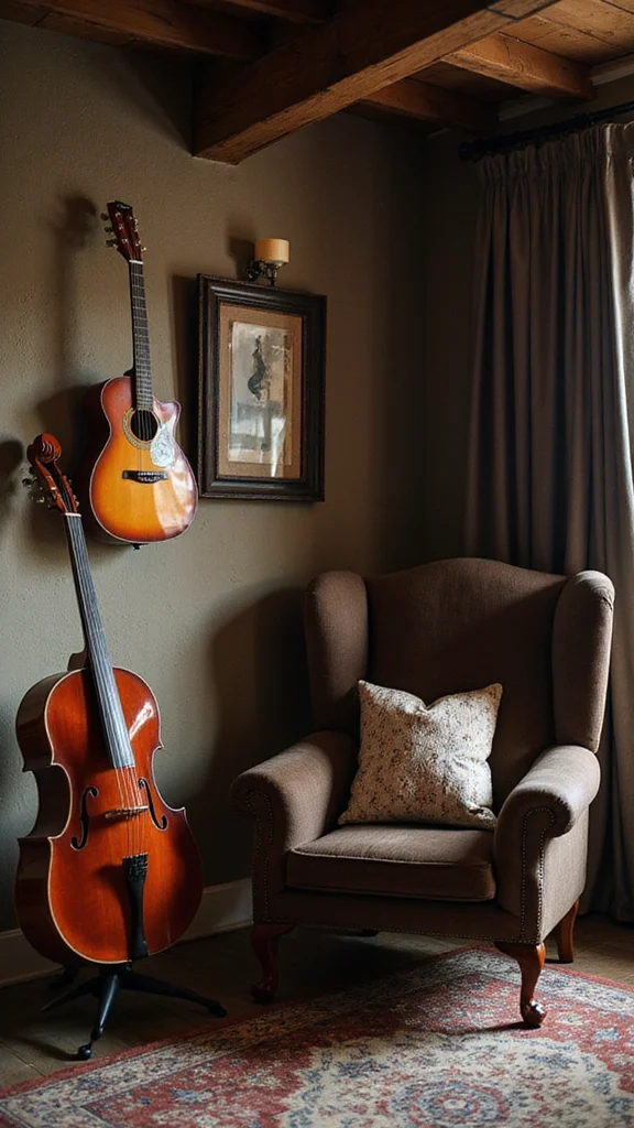 Soundproofing the area can enhance your experience, allowing you to enjoy music or practice without disturbances. Add a comfortable chair for relaxing or playing sessions.