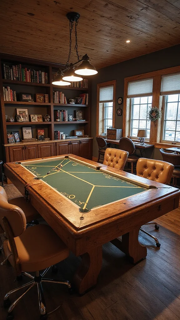 Invest in a multi-functional game table that serves as a stylish centerpiece and social hub. Choose a design that accommodates various games like poker or board games, ensuring it looks good even when not in use.