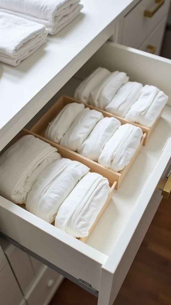 Don’t forget about drawer inserts to help organize baby clothes, providing both functionality and style!