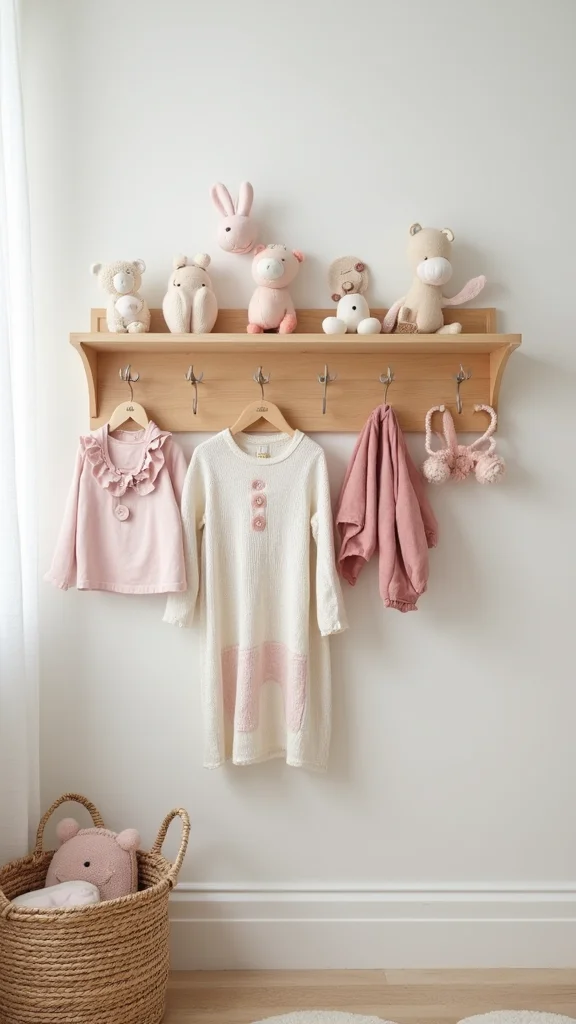 Here are some thoughtful ways to use them: Hang pajamas, jackets, or bags. Use them to display special outfits for a decorative touch. Coordinate the hooks with your nursery’s color palette for a cohesive look. This storage solution brightens the nursery while keeping it functional!