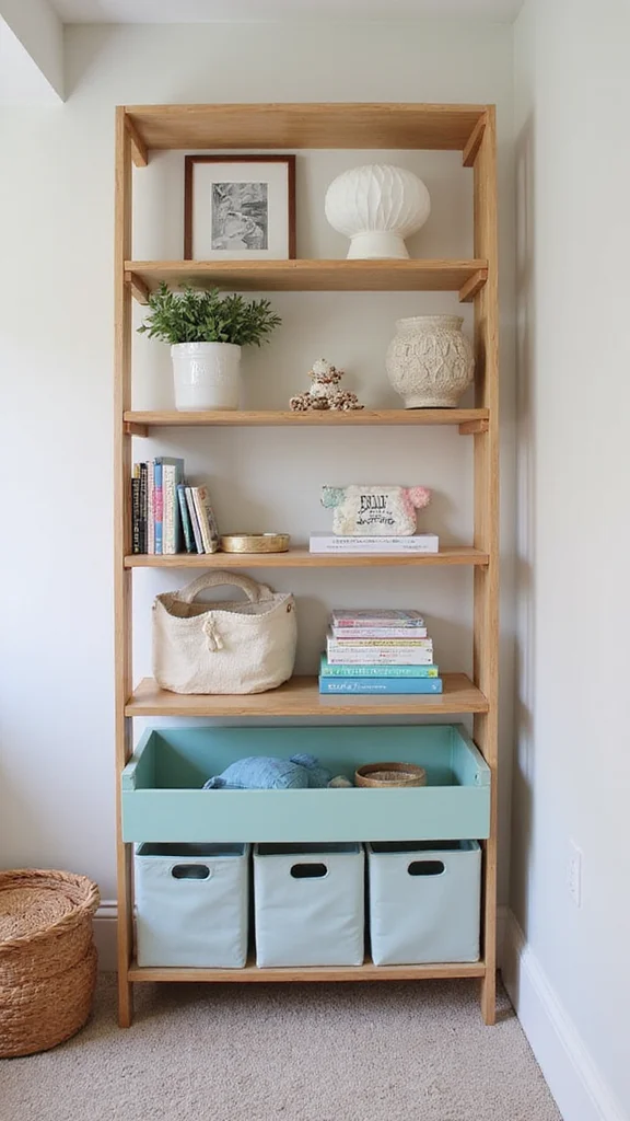 Additionally, choose calming colors for your shelves or paint them to match your nursery theme, enhancing the overall tranquility of the space.
