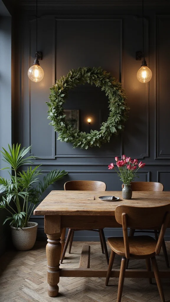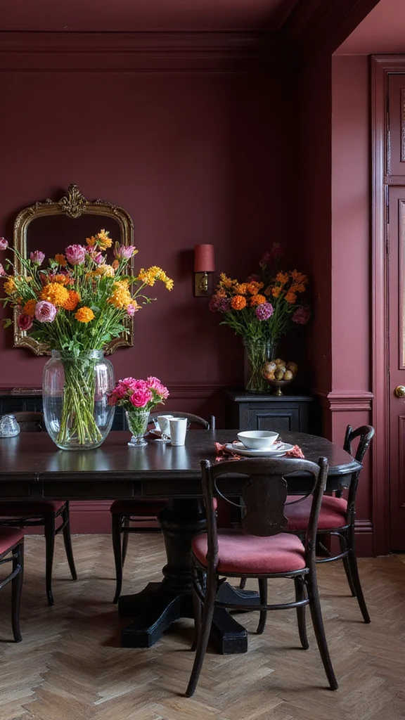 If you love bold statements, a fully dark room can be striking. Consider deep burgundy or forest green paint for a dramatic effect. A dark dining table set against these walls can be adorned with vibrant floral centerpieces for contrast. This look embraces the dark while remaining lively and inviting, often featured in trendy decor magazines.