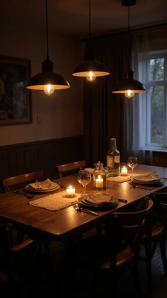 Low lighting can significantly change the vibe of your dark dining room, making it feel intimate and inviting. Use dimmable pendant lights or wall sconces to create a warm glow. Incorporating candles as centerpieces can further enhance the cozy atmosphere, perfect for special occasions or casual dinners.