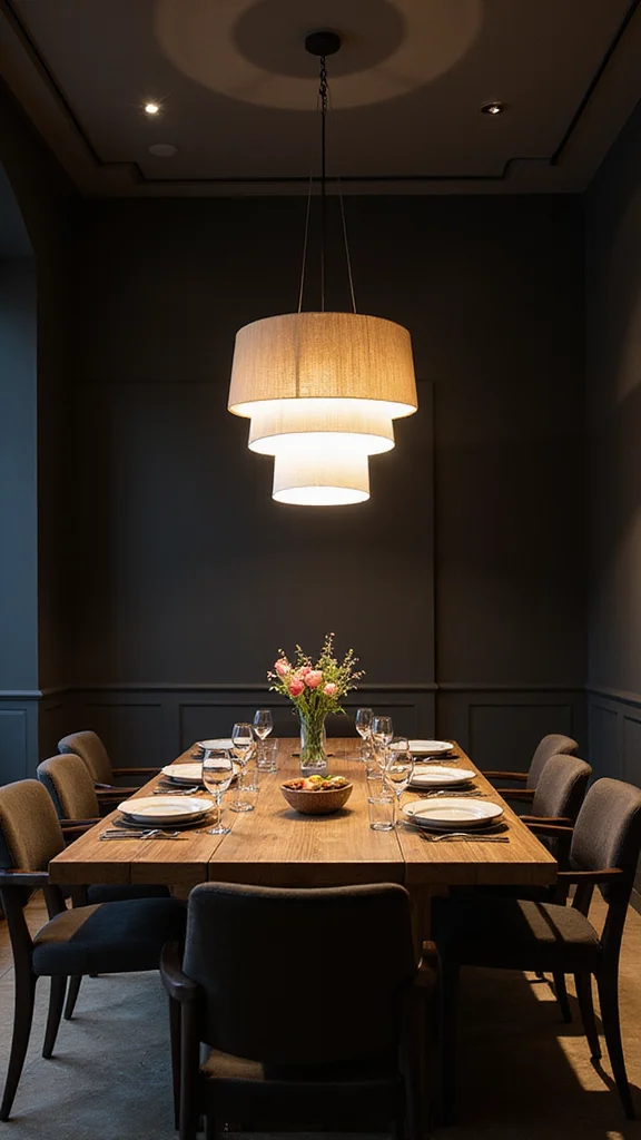 A statement lighting fixture can dramatically transform your dark dining room, making it a focal point. Consider a large chandelier or a modern pendant that contrasts beautifully with dark walls. This not only provides essential lighting but also enhances the overall aesthetic of the space.