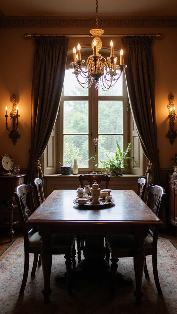 Embrace a vintage aesthetic by incorporating dark, rich colors reminiscent of classic styles. A mahogany table paired with antique chairs enhances the nostalgic vibe, inviting guests to enjoy the charm of the past. Vintage tableware and decor pieces, like chandeliers or glassware, add character to your dining space. This trend is popular for its storytelling qualities in home decor.
