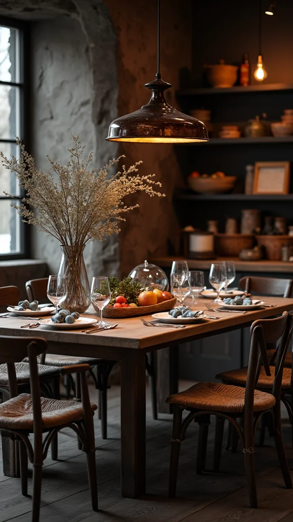 How Can I Incorporate Rustic Elements into a Dark Dining Room?
