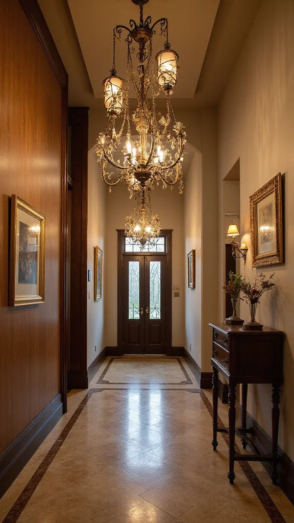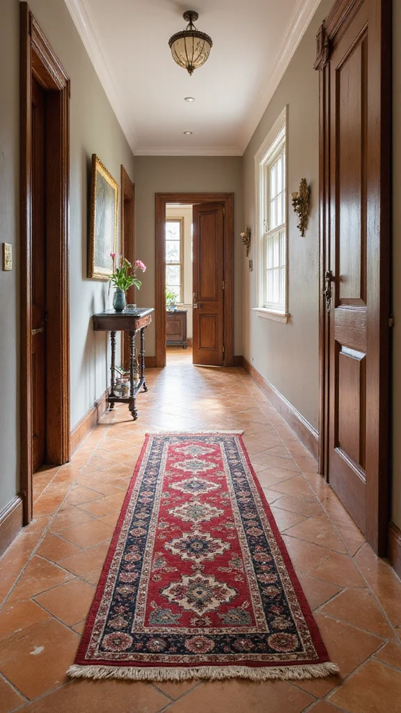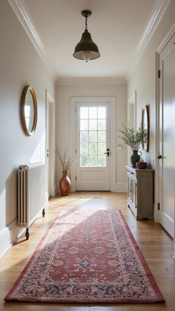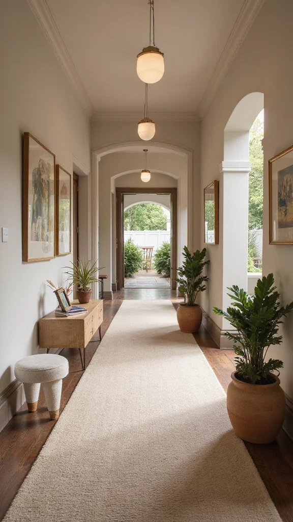 Balancing old and new decor creates a dynamic hallway that feels fresh and timeless. Mix modern elements like sleek lighting with traditional pieces, such as vintage mirrors or furniture. This contrast keeps the design layered and engaging.