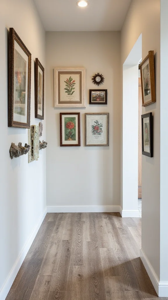 Don’t forget about sculptures or ceramic pieces on a console table for added dimension. Choose pieces that align with your color palette for a cohesive look. Leave space for breathing room; a few well-placed artworks can transform your hallway into a conversation starter.