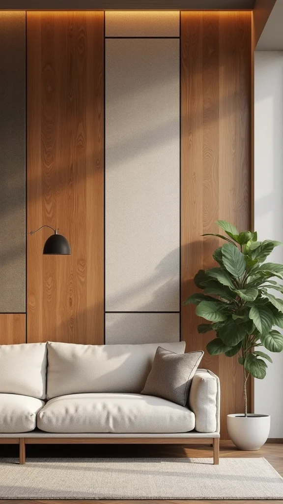 Add depth to your space with textured wall panels behind your couch. Options range from wood slats to fabric-covered panels, creating a warm and inviting backdrop. Choose materials that match your decor style, like rustic reclaimed wood or soft textiles. These panels can be painted to fit your color scheme, enhancing the room’s aesthetics.