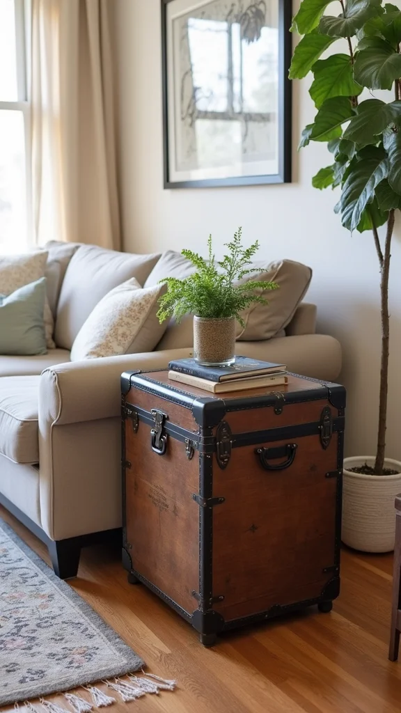For a unique touch, place vintage or upcycled furniture against the wall behind your couch. An old trunk or antique side table can serve as both decor and functional storage. This adds character and charm to your living area, sparking conversations with guests.