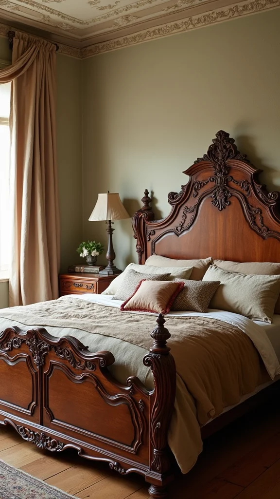 Creating a vintage-inspired bed frame adds elegance to any bedroom. You can choose intricate carvings or keep it simple with a solid frame that balances beauty with functionality. Pinterest is buzzing about these frames, showcasing styles in deep greens and rich mahogany, perfect for creating a classic vibe.