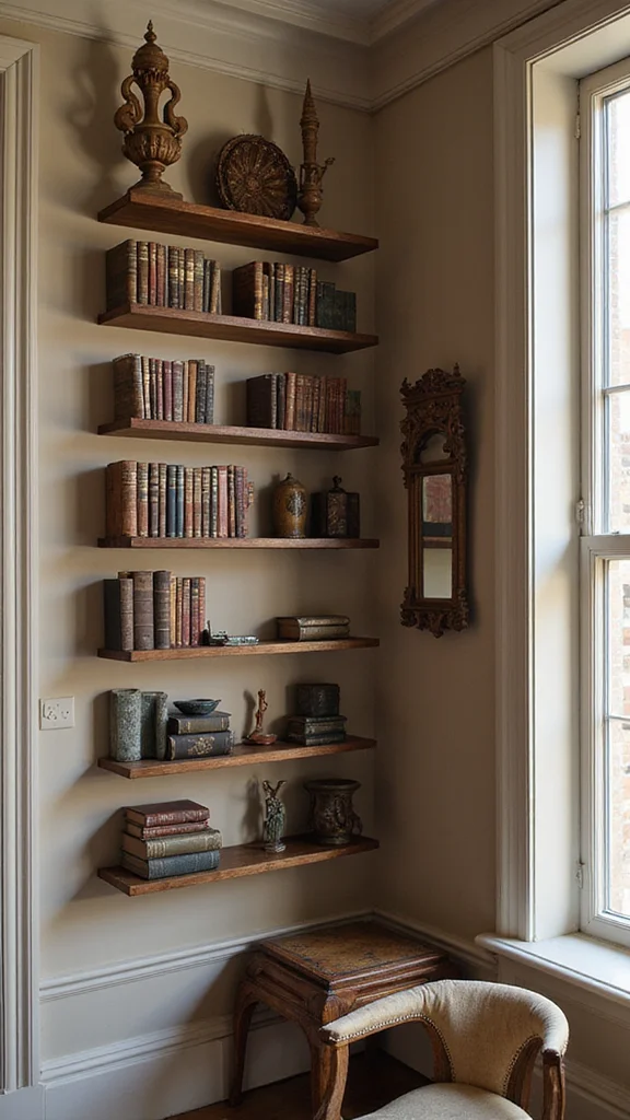 Rustic wooden shelves are practical and stylish for any Victorian-inspired room. You can create them using reclaimed wood for a weathered look. Adding decorative brackets or wrought iron can give them an extra vintage flair.