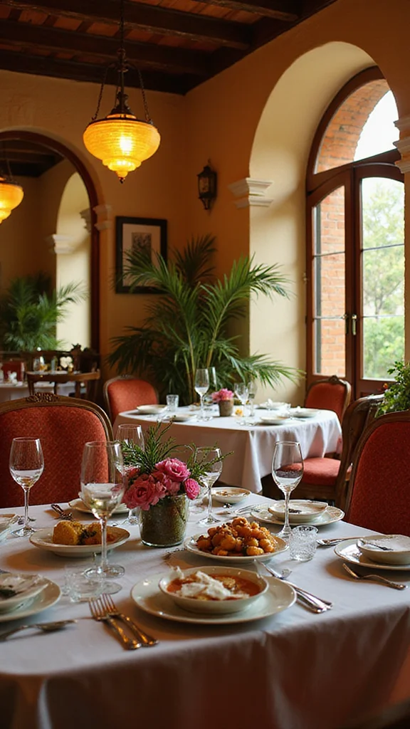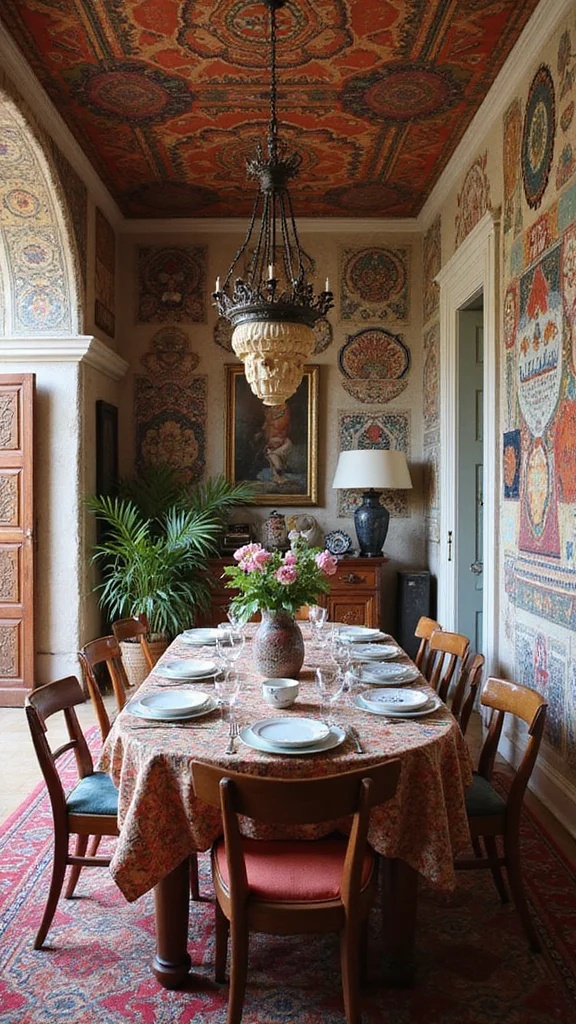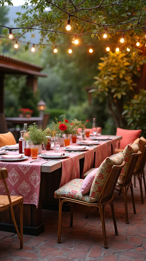 To truly capture this style, consider incorporating colorful fabrics in your table settings or cushions to create a cozy and welcoming environment.