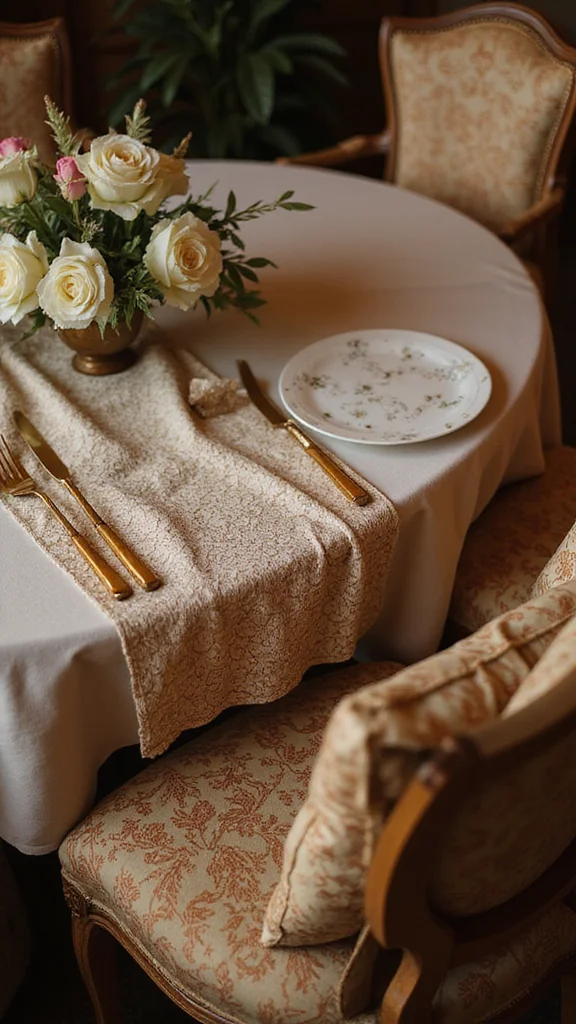 Incorporating colorful fabrics is a fantastic way to infuse life into your Mediterranean dining room! Start with vibrant tablecloths or runners that reflect the rich hues of the region, like deep blues, burnt oranges, or sunny yellows.