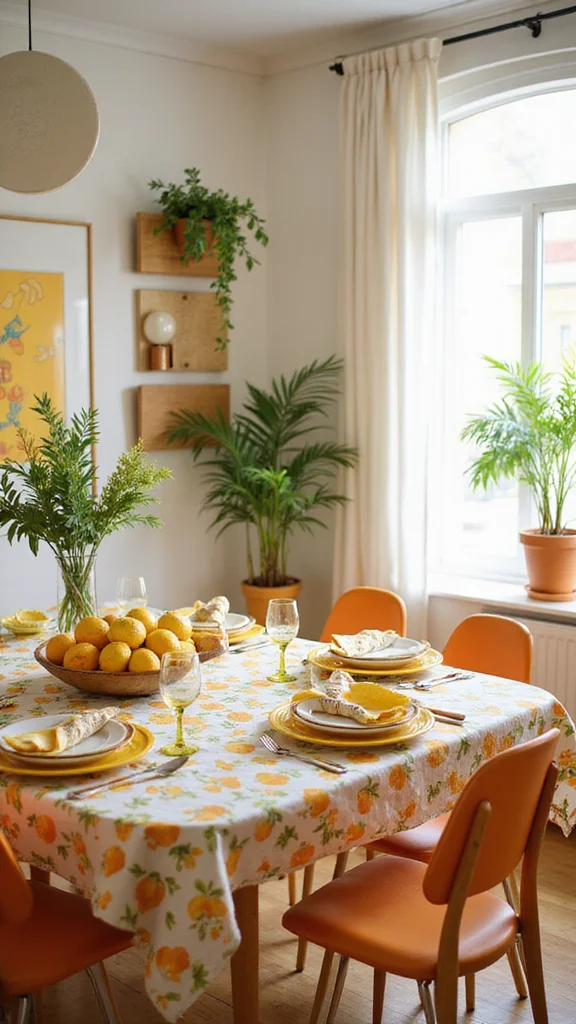 Incorporate bright citrus accents to bring a pop of color and freshness to the dining room.