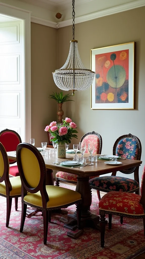 Mix and match different floral patterns to create a layered and dynamic look, adding depth to your dining room.