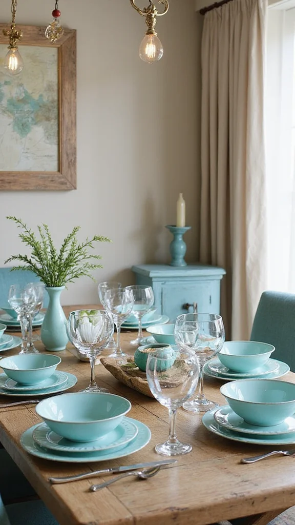 These colors evoke a calming seaside atmosphere, perfect for a dining area where you can enjoy meals with loved ones.