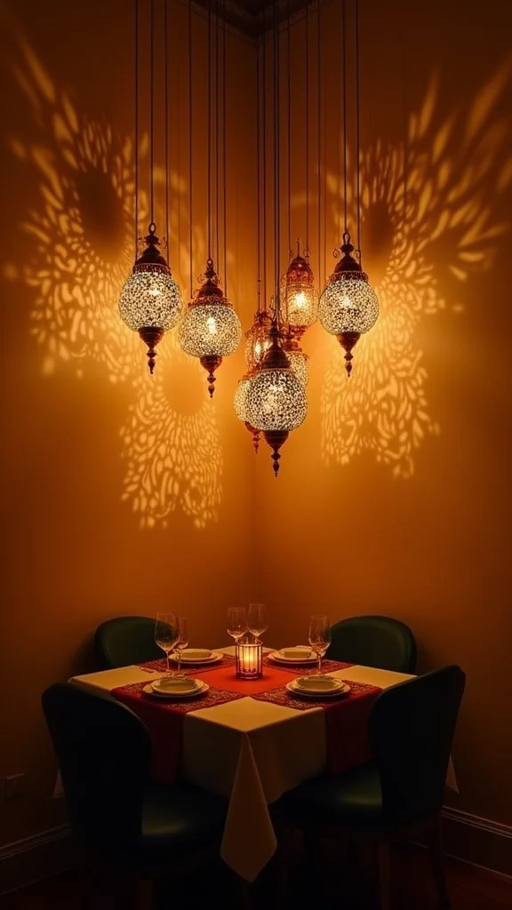 Hang several lanterns at different heights for a layered look, or place smaller ones on the table for an intimate ambience.