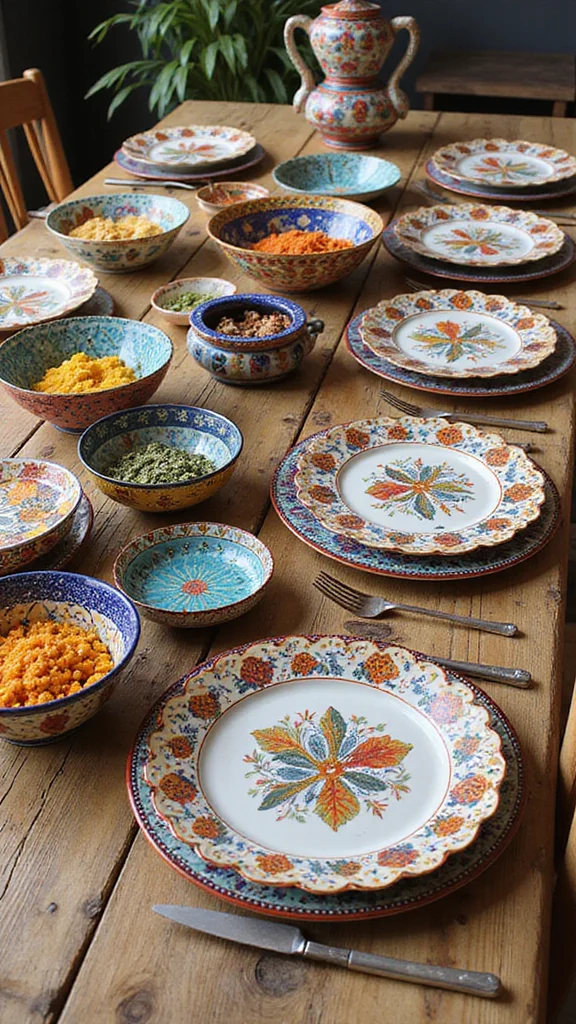 Think hand-painted ceramics, colorful plates, and intricate serving bowls that not only serve a function but also tell a story.