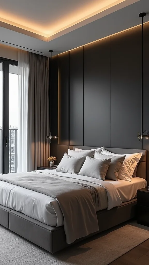Minimalist Haven strips away clutter, letting calm take the lead. A neutral palette of whites, grays, and soft browns sets the stage. Clean lines from a platform bed and simple nightstand keep the space open. A single well-chosen artwork can anchor the room.