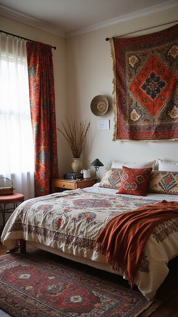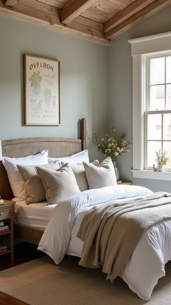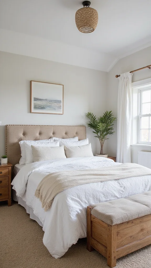 Layer throws and pillows for depth. A small bench at the foot of the bed gives extra seat. This look feels homey and welcoming.