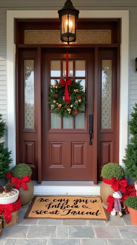 A seasonal doormat sets the tone at the door. Pick designs with snowflakes, reindeer, or warm greetings. They welcome guests and protect indoor floors from outdoor dirt.