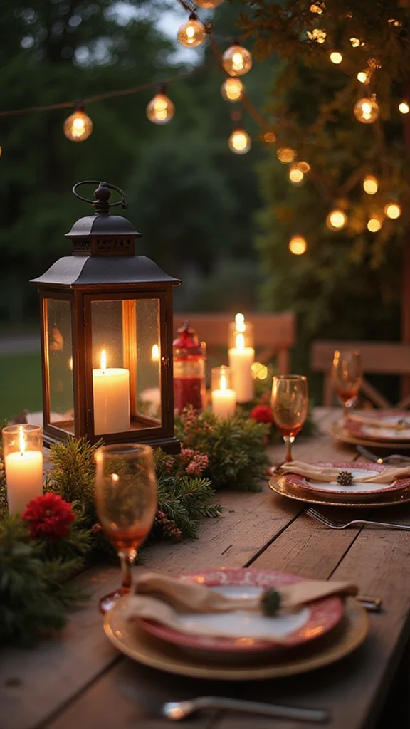 Lanterns and candles bring a soft, magical glow to your outdoors. They create a warm, inviting mood that feels casual yet polished. Mix lanterns of different heights and styles; place LED candles inside for safety. As seen in design blogs, this mix works from porch steps to table settings.