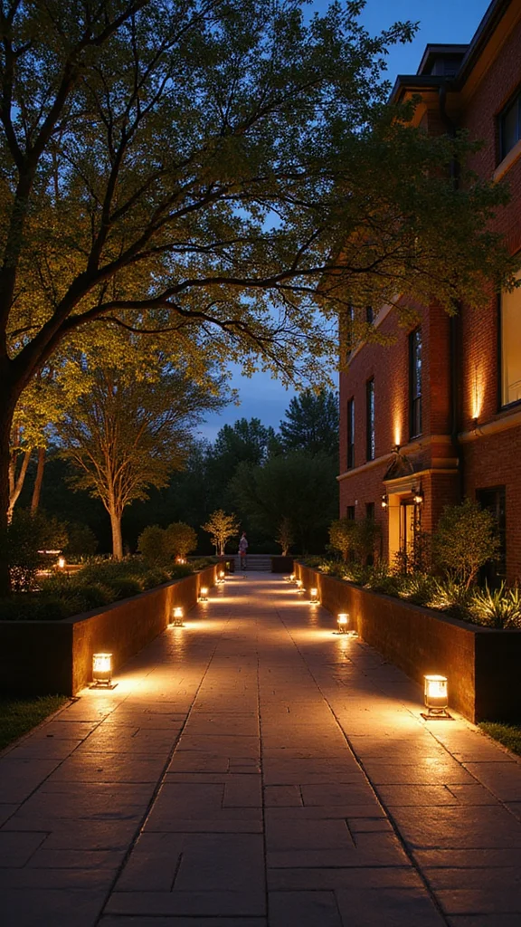 Pathway lights guide guests and add charm. They light the way with a soft, inviting glow. Solar-powered options are eco-friendly and easy to install. Picture glowing stakes lining the driveway or path, casting a warm glow over the way.