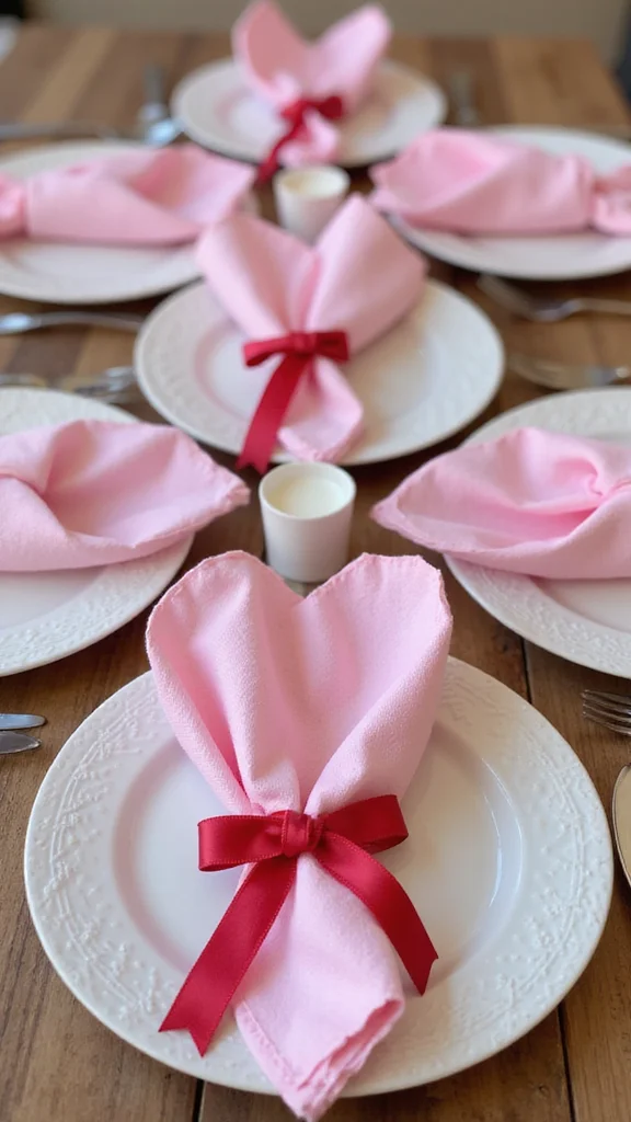 Fun fact: 75% of guests notice creative napkin folds before the main course. For valentines table decor simple, heart-shaped folds and a tiny ribbon elevate every place setting—no expensive tricks needed.