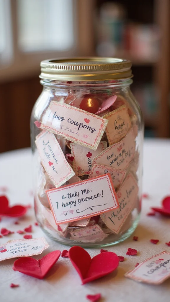 Use colorful cardstock to catch the eye. Be playful with the ideas to feel special. A fun jar design can tie into your theme. Love coupons invite affection and create lasting memories.