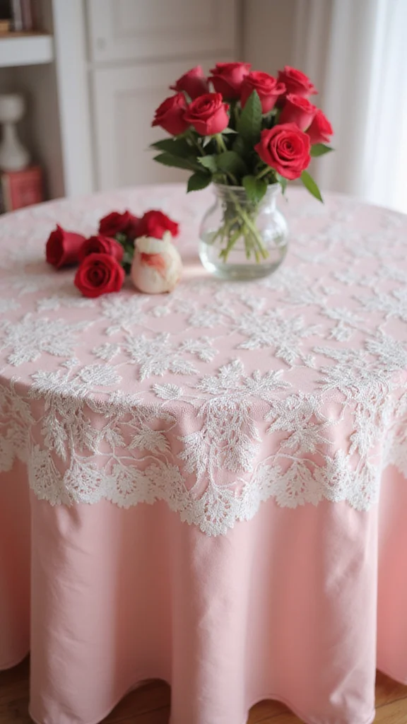 Fun fact: a pink or red tablecloth with a white lace overlay costs under $15 at most dollar stores, but reads luxe. Pro tip: iron well, use varying lengths to add depth, and tie satin ribbons at corners for a polished finish.
