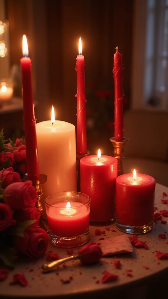 Candles instantly set a mood with soft, flickering light. Look for heart-shaped or plain white or red candles that fit your color story. Cluster them at different heights for a dynamic display. Mix glass and metallic holders to build a chic, layered look.