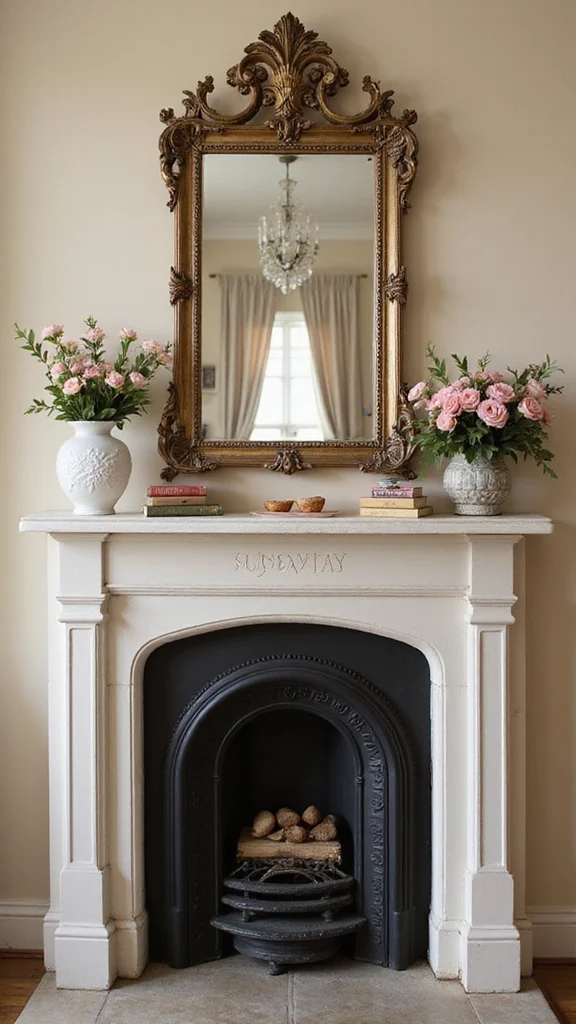 Mirrors brighten space and create a sense of depth. Hang a decorative mirror above the mantle or set a smaller piece on the mantle itself. The reflection doubles your display and adds elegance. Choose shapes that suit your style and room tone.