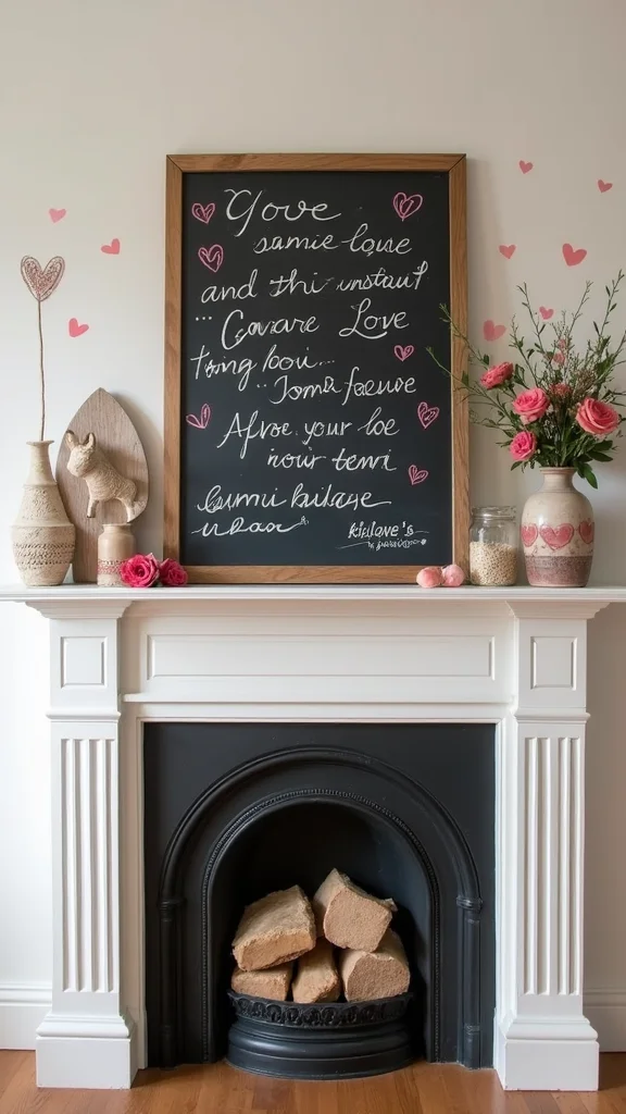 Chalkboard messages add a playful voice to the mantle. Write sweet notes, love quotes, or date-night prompts. Change the message regularly to keep the look fresh. You can place the board among other decor or make it a focal point.