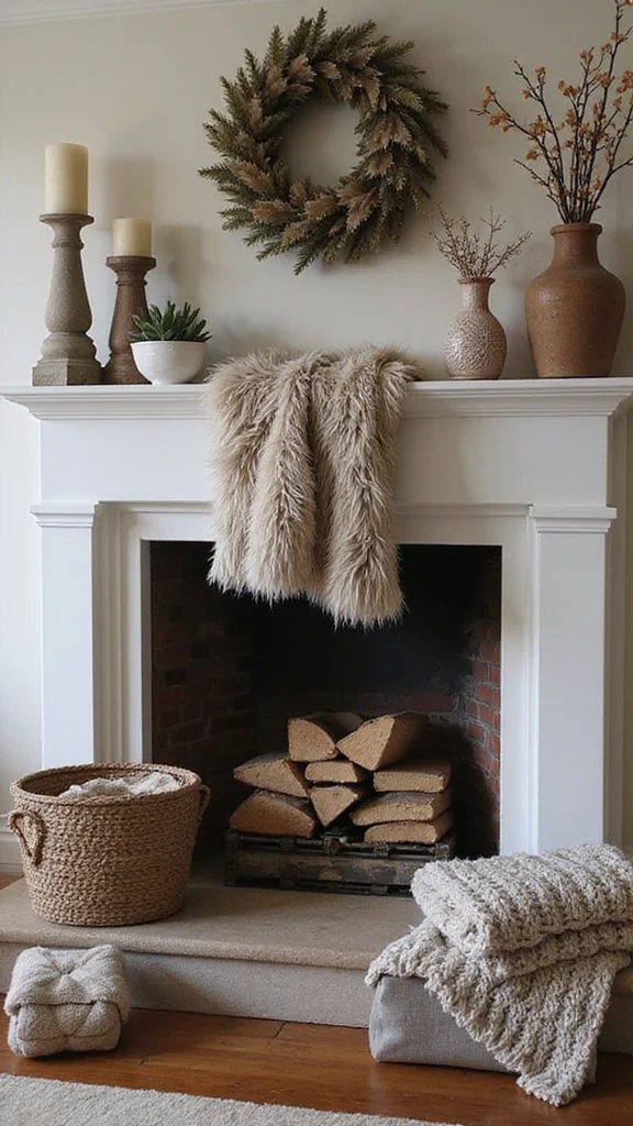 Layering textures adds real warmth to the mantle. Add faux fur throws, knitted blankets, and lace doilies to invite touch. A mix of fabrics creates depth and a snug feel. Let textiles spill over the edges for a soft, welcoming look.