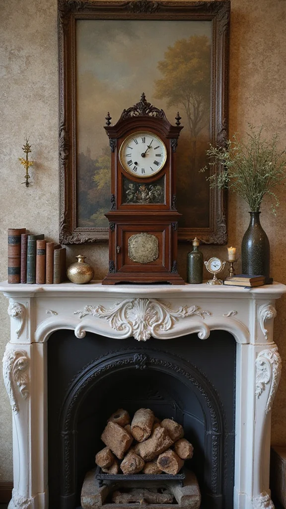 Vintage finds bring character and a story to your mantle. Look for antique books, old clocks, and unique trinkets that match your style. Stack books with pretty covers or use an antique clock as a centerpiece. Mixing these items with new pieces adds depth and a timeless feel.