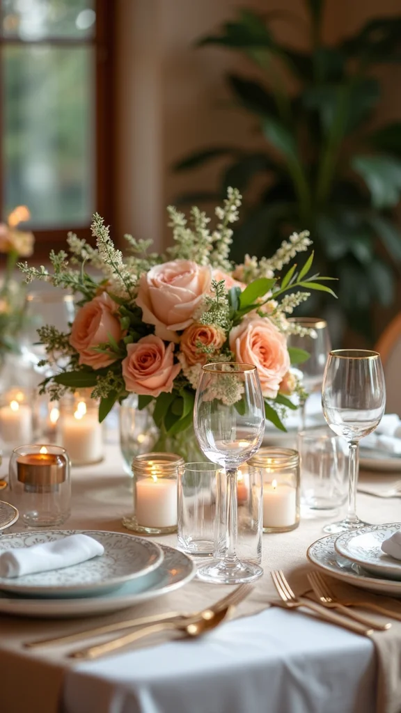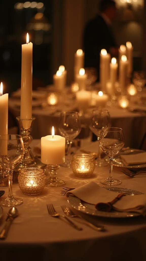Keep candlelight subtle—short, unobtrusive candles or tasteful LED options work beautifully. This approach delivers elegance and simplicity you’ll love.