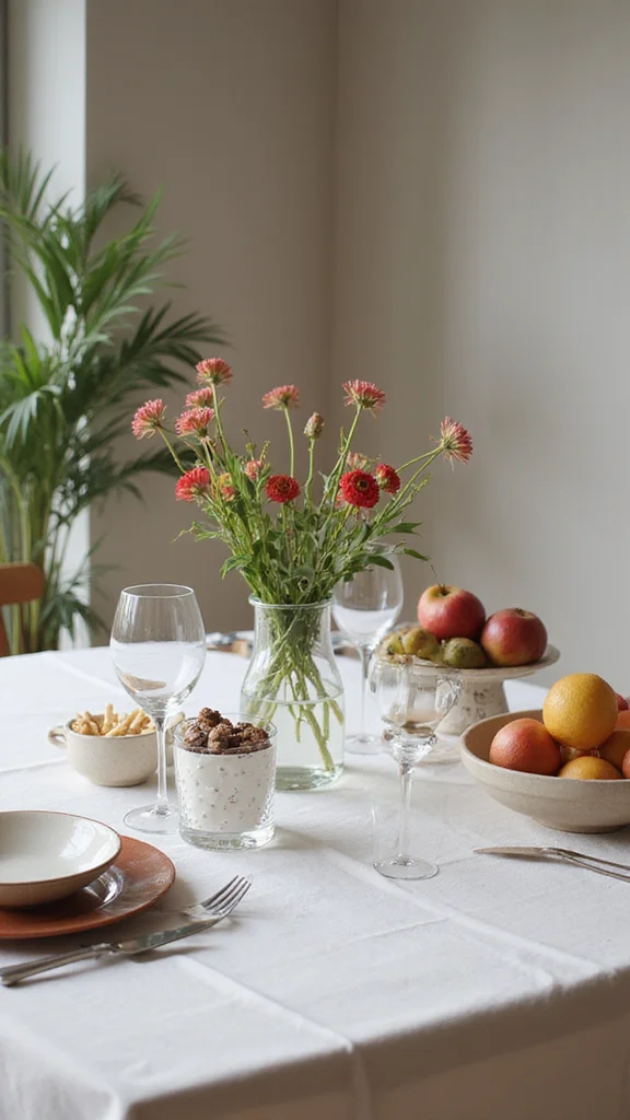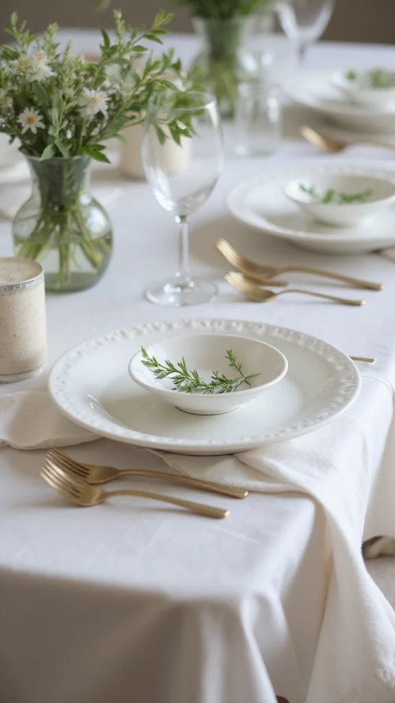 Textiles add warmth and comfort to the scene. Plush placemats and soft napkins invite touch and conversation. Keep textures light to match a minimalist vibe. Layer a linen tablecloth with delicate napkins to create depth.