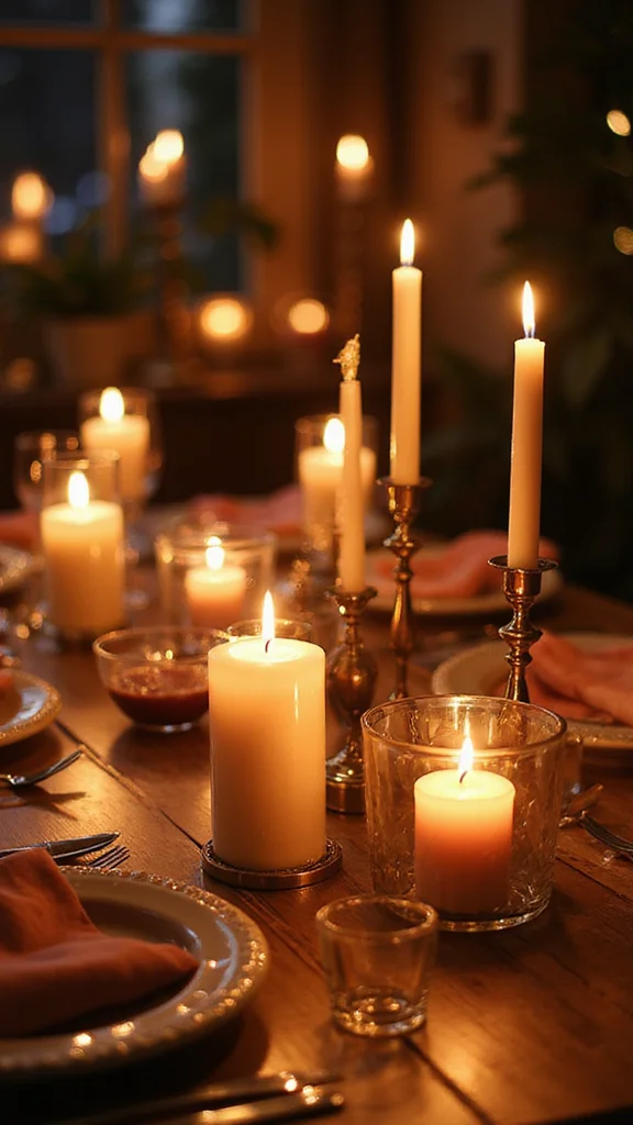 Choose unscented candles for dining to avoid overpowering aroma. Group candles in clusters to create focal points. Use warm, reflected light to make your table feel more intimate.