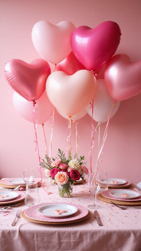 Use heart-shaped or pastel balloons for softness on display. Anchor with ribbons or weighted stones for stability. Vary sizes for a playful cascade along table. Pair with florals to keep balance and color.
