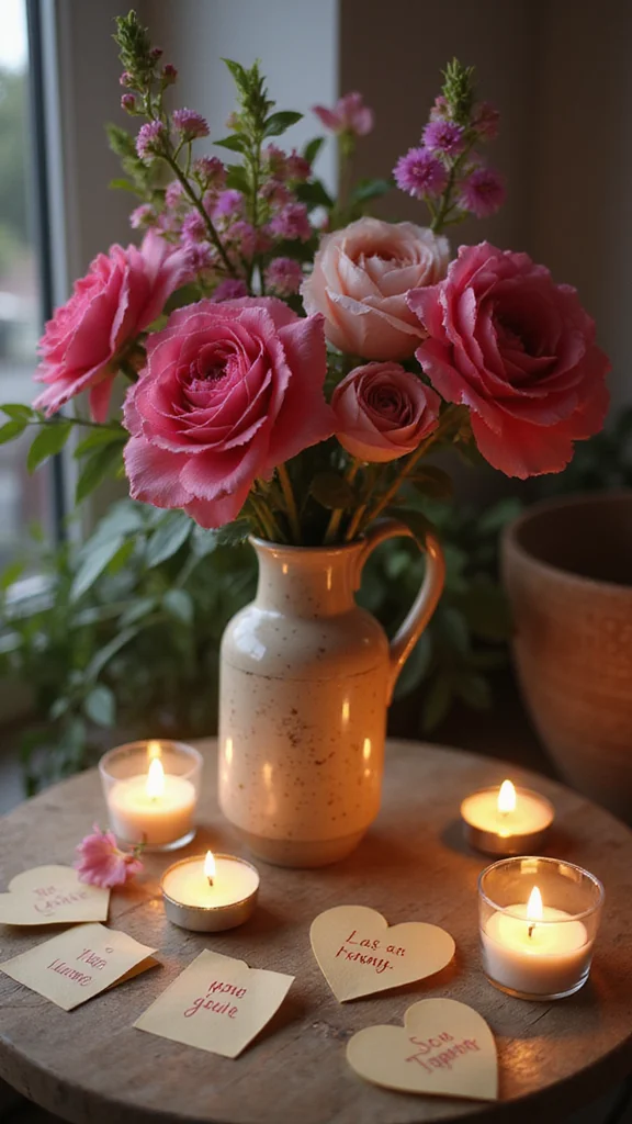 Keep water fresh daily to extend life, and pick a vase that echoes your room’s palette, from soft pastels to metallics. Place a few candles or love notes around the vase to deepen the moment. A thoughtful centerpiece fills the room with scent and romance.