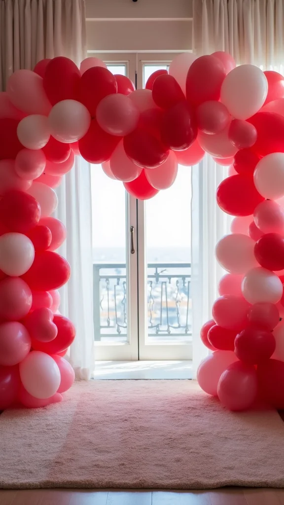 A balloon heart archway at the door greets your partner with a wow moment. Build a sturdy arch to hold the balloons in a heart shape using a frame or PVC. Mix heart shapes with round balloons in your chosen palette to create depth. A touch of greenery softens the look for a natural feel.