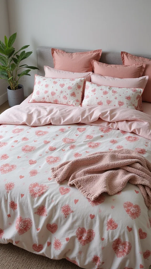 Switch to linens that echo love and romance. Look for hearts, romantic quotes, or floral prints. Layer a soft throw for extra coziness.