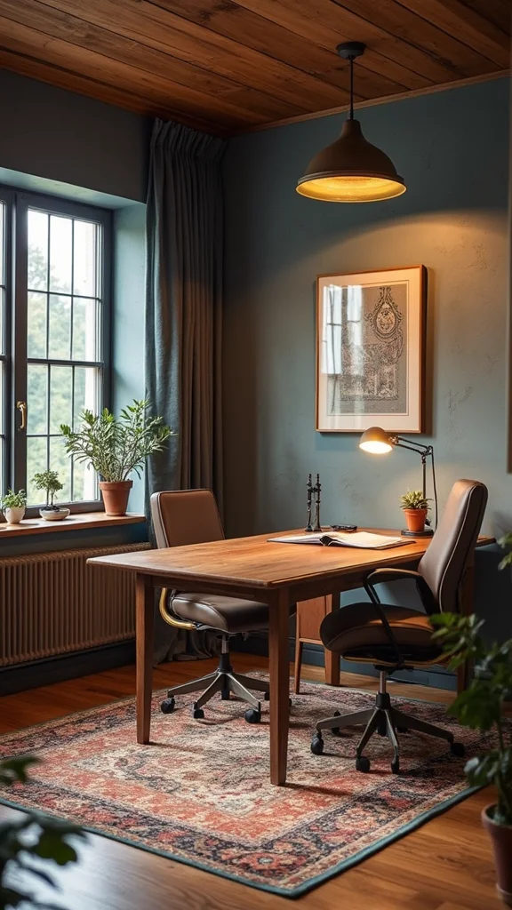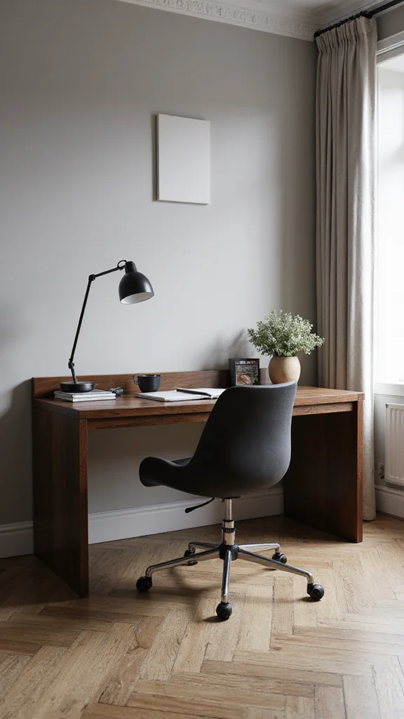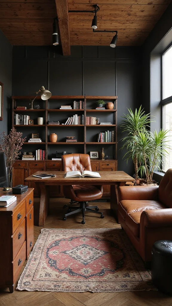 Set a complementary palette with charcoal, navy, and leather accents. Add smart storage to keep surfaces clear—think wall shelves, a slim filing cabinet, and simple cable management. Finish with tactile details like a leather desk pad or a rugged rug to boost productivity without sacrificing style.