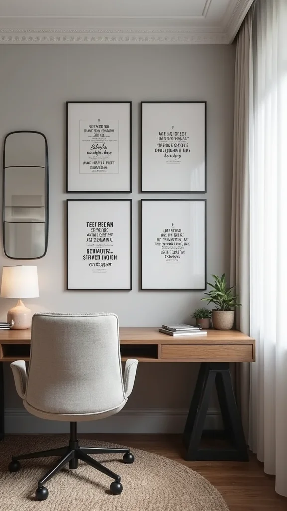 Quotes can spark focus. Pick frames that look neat. Choose lines that fit work goals. Trends show quote walls in offices.