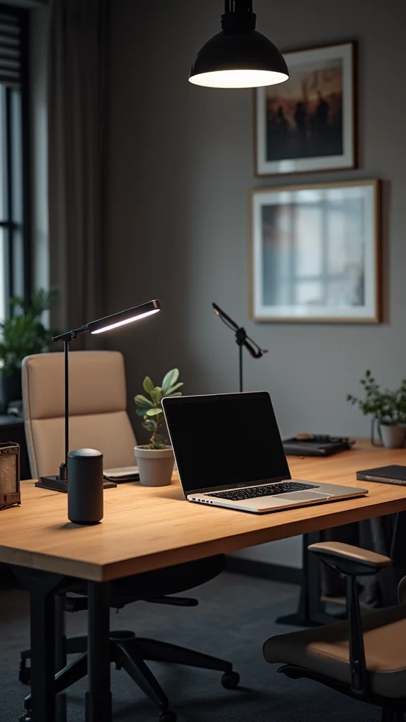 Use smart lighting that matches room mood and task needs. Choose voice assistants that fit your workflow every day. Place devices within easy reach near power outlets. Add only tools you actually use daily for work.